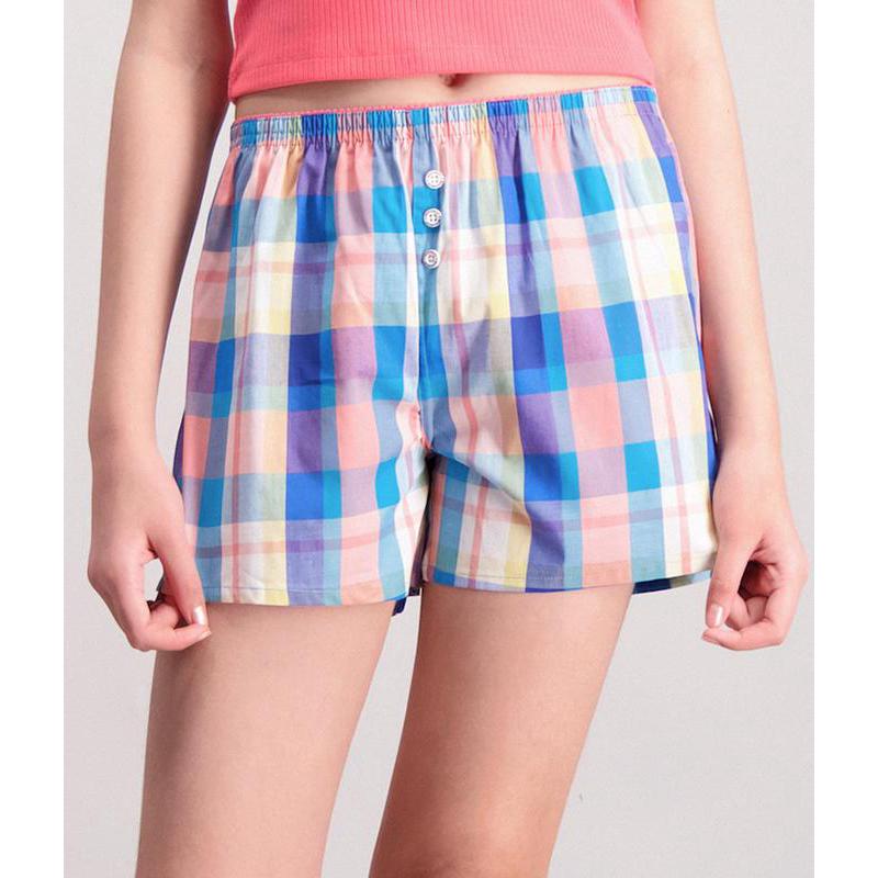 Bench Ladies Boxer Shorts Blue Peach Checkered Shopee