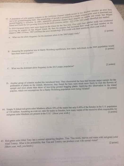 Solved A Population Of Wild Poppies Endemic To The Califo